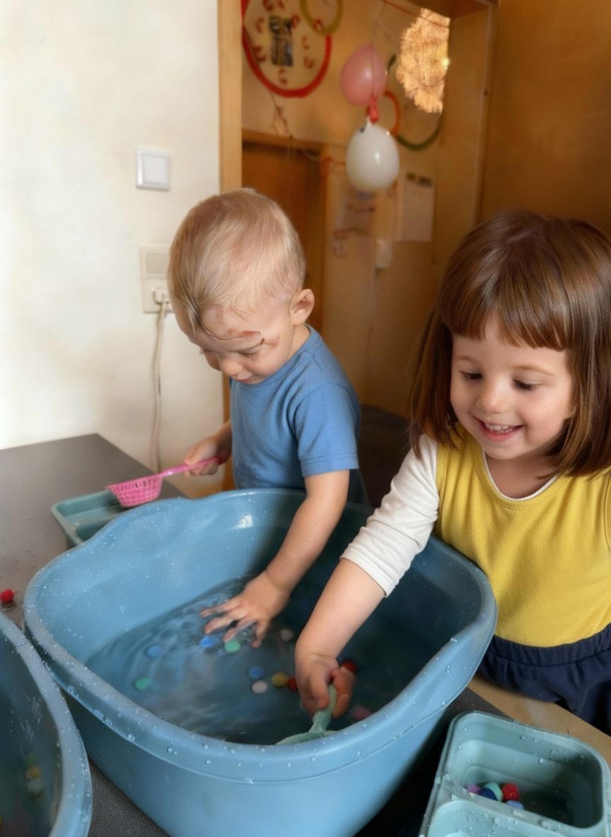 Hier wird gestaunt, gefühlt, geforscht: schütten, stapeln, sortieren, lauschen! An bunten Entdeckerstationen stärken die Minis ihre Feinmotorik, Sinne und Konzentration. Und zwischendurch? Freies Spielen - denn manchmal sind Türme spannender als jeder Plan.